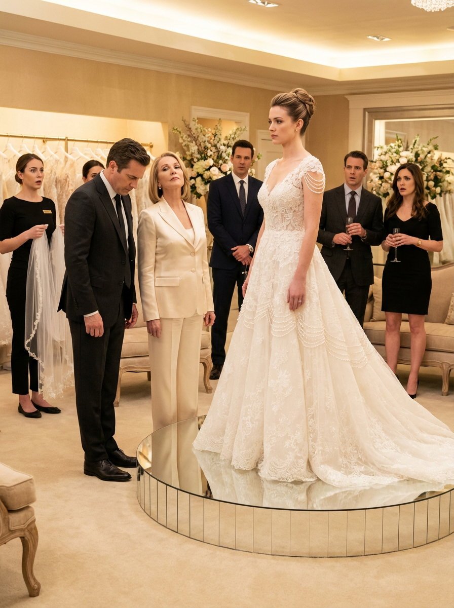 The bridal salon on Madison Avenue went so quiet that I could hear the whisper of satin as a consultant behind me shifted her weight. Someone near the veil display inhaled sharply. A woman I had never met lowered the crystal flute in her hand halfway to her mouth and stared at me with open pity. Even the music—some soft instrumental arrangement of an old love song—seemed suddenly too loud, too intimate, too mocking.